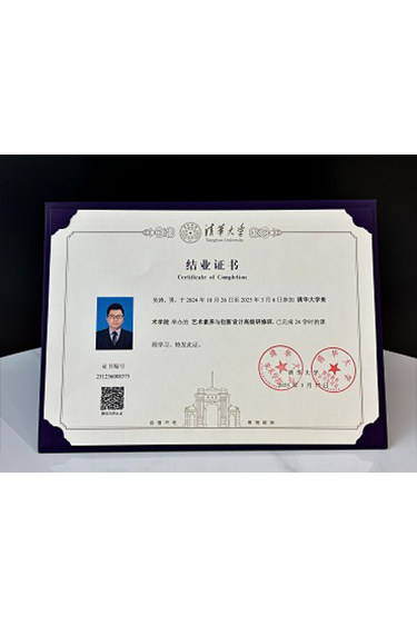 吴涛荣获 清华大学美术学院《艺术素养与创新设计高级研修班》结业证书